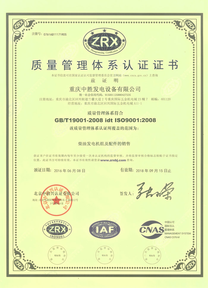 质量管理体系认证证书