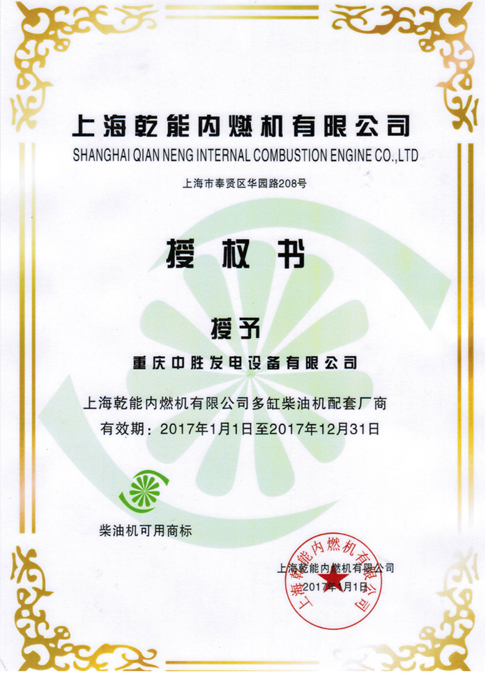 上海乾能授权证书