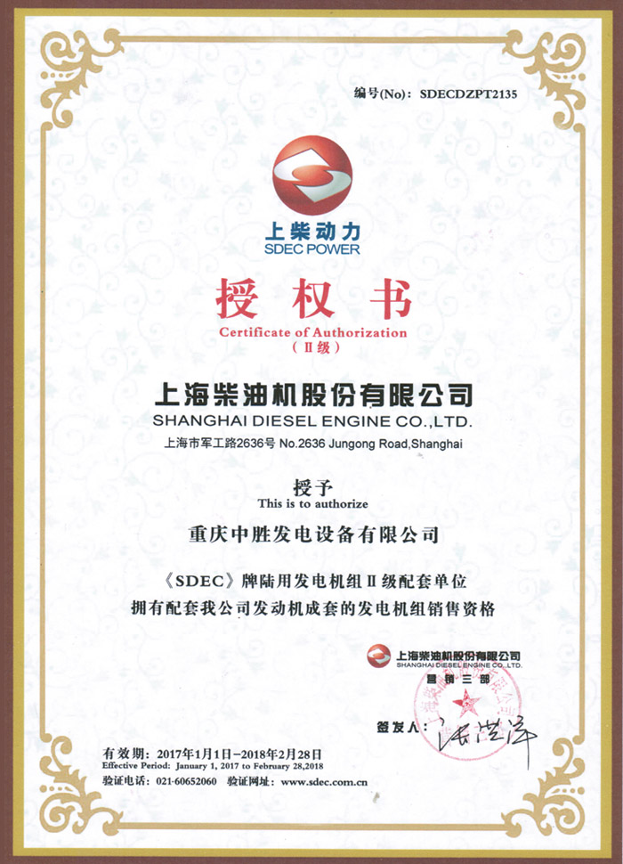 上柴股份授权证书